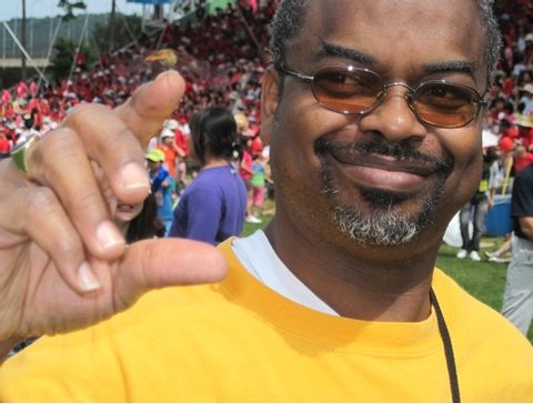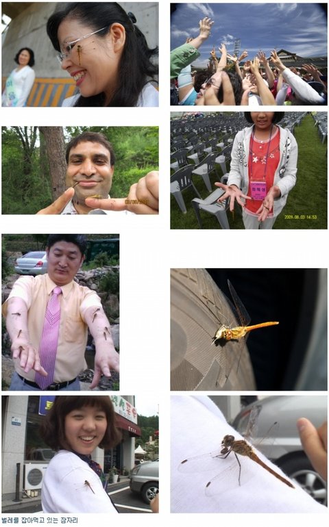 역시나 수많은 잠자리 떼가 날아와 성도들의 몸 곳곳에 앉았습니다. 그리고 기대한 대로 제 몸에도 잠자리들이 살포시 앉는 것을 보고 감동과 함께 하나님 사랑을 느꼈습니다. 저는 시골에서 자랐기 때문에 잠자리를 잡는 일이 어렵다는 것을 알고 있습니다. 그런데 사람의 손이나 몸에 스스로 날아와 앉는 것이 참으로 신기했지요.