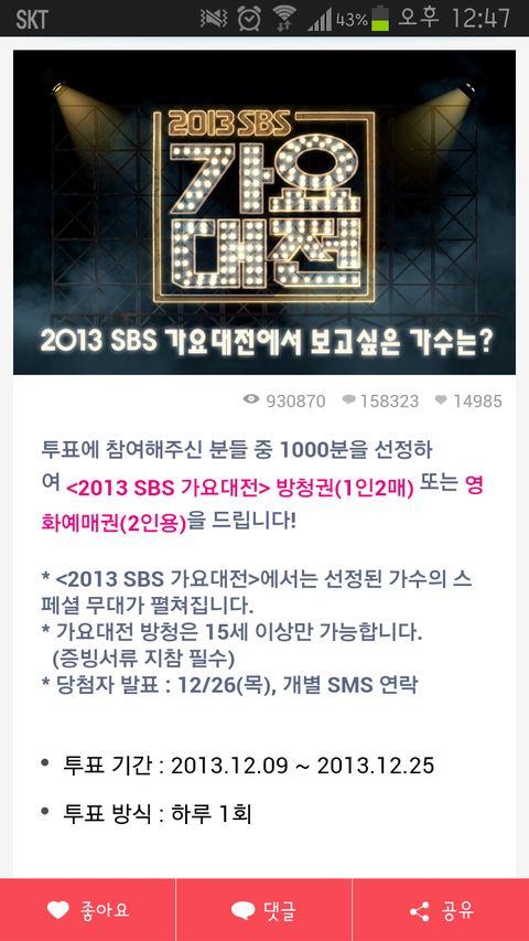 투표응모하면 1000명 뽑아서 당첨권도준대