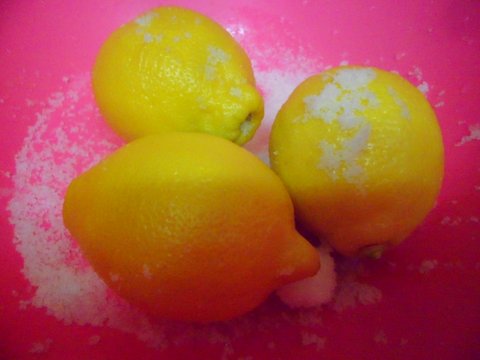 레몬에 소금을 박박박 문질러줍니다!! 저는 두 개는 레몬차할라구 3개다했지만