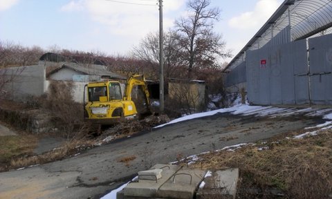 그 후 창고 준공 후 관급 도로 공사 15ton 차량으로 창고 벽에 골재 돌멩이를 높은 곳에서 여러 번 부어 창고에 균열이 생기는 피해를 보았고 이것이 말 그대로 부수겠다는 것인지 묻어 버리겠다는 것인지 한탄스럽습니다.