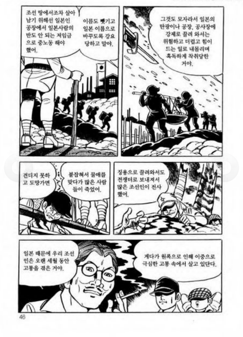 재일조선인을 강간한 일본인을 잡아다가 경찰에 넘기고 한국소년이 일본순사에게 잡혀가서 독립운동혐의로 사형당하기전에 목숨걸고 탈출시켜준다. 탈출한 소년은 백두산에서 독립군이 되어서 후일 주인공을 구출해준다 역사고증이 매우 철저하며 자국의문화에 대한 자부심이 많은 만화이지만 앞선 언급등으로 인해  우익들 사이에선 매국노로 몰리고 있다.