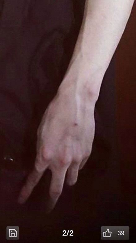 어제 루한 손등에 선명한 주사 바늘자국 있는 것을 팬이 봤어.