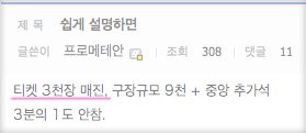 티켓 예매 사이트 캡처 (현지 팬 블로그)
