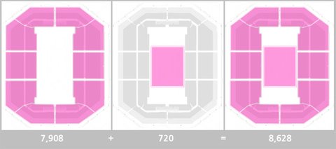 스탠드 = 최대수용인원 8,628 - 아레나 720 = 7,908석