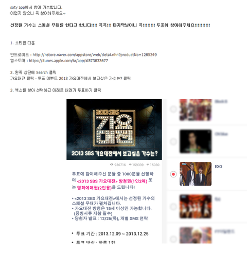 지금sbs가요대전투표중인데2프로차이로1위를못하고있어요..