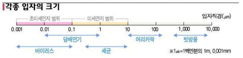 대기 중 장기간 떠다니는 직경 10마이크로밀리 이하의