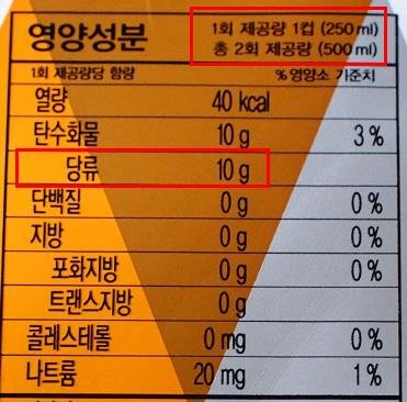 데일리C 비타민워터 당류가 10g 인데 2회 제공량이니까
