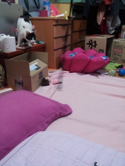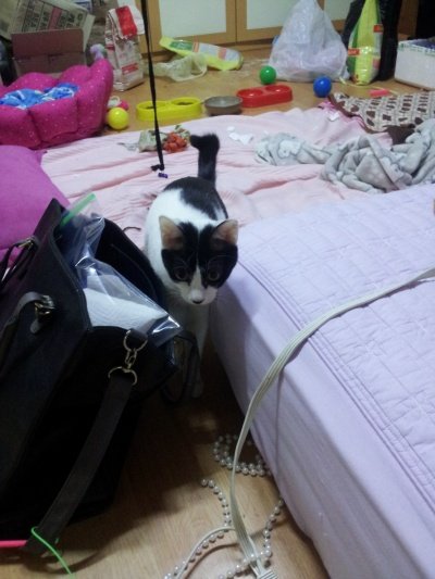 침대위 이동장두고 둥인 안에 자주 들어가 있어요 ~ 대구에서처럼 )