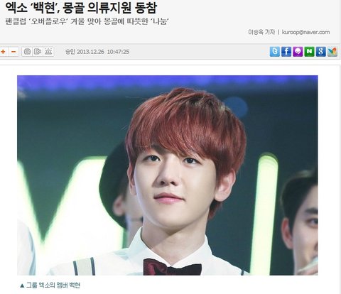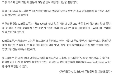 백현이 팬페에서 좋은일 했네 (기사캡쳐有)
