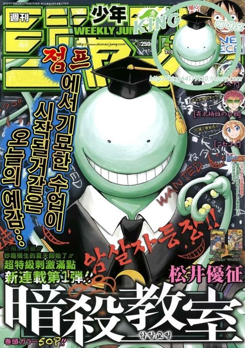7위는 암살교실로서 마인탐정 네우로의 작가 마츠이 유세이의 차기작으로 전작을 뛰어넘는 인기를 구사하고 있다. 특히 원피스, 나루토, 블리치, 은혼 등이 연재되는 주간 소년점프에서 연재가 시작되고부터 지금까지 쭉 인기투표 순위 최상위권을 유지중이라고 한다