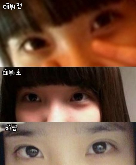 그리고 마지막으로 데뷔전/데뷔초(미아)/지금 순서대로 쌩얼눈 비교해봤음.