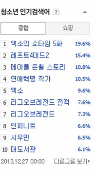 131227 00시 청소년 인기검색어