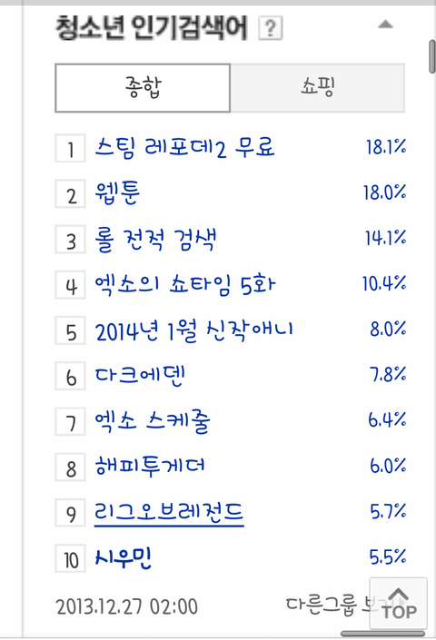 131227 청소년인기검색어 우민이 또 놀이터갔네~~