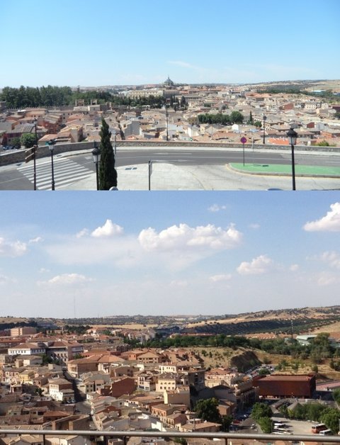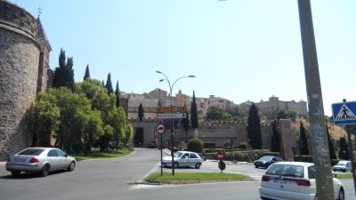 버스를 타고 똘레도에 도착했음. 저멀리 언덕 한참위에 뭔가가 보임. 물론 버스도 있었음 하지만 우리는 가난한 배낭여행객임. 가진거라고는 튼튼한 다리 두짝밖에없는ㅋㅋㅋ사실 스페인어 한글자도 모르는 문맹인데 뭣도 모르고 보이는 곳으로 신나게 걸어올라감ㅋㅋ아 저 똘레도가 무지갠가 왜 점점 멀어지지,,언니 더워...를 연발하던중 드디어 똘레도 구시가 입구가 보임!!