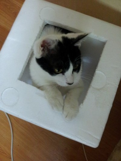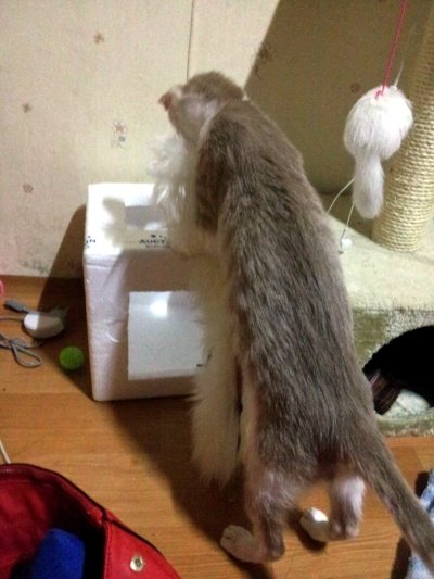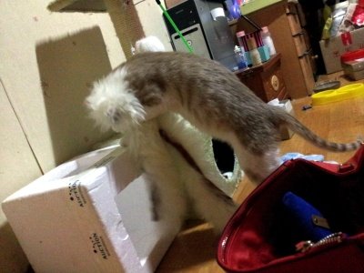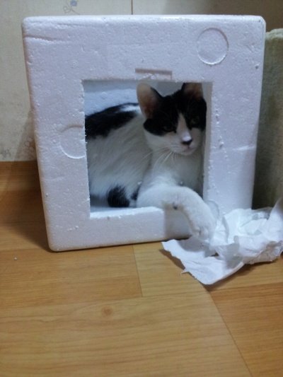 새롭게 만들어준 스티로폼에 들어가 쥐놀이하는중 ~