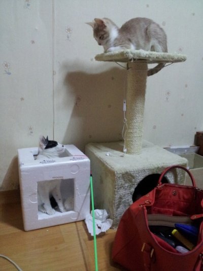 고양이들 이쁜모습보다 집 치운모습이 더 눈에 들어올듯 ![]()