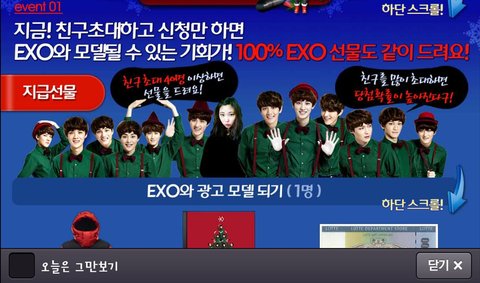 엑소랑 광고 모델로 사진 찍을 수 있다고 하네요!!!