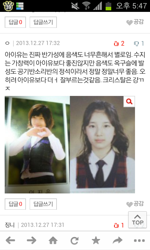 이건 어떤 수끼리빠순이년이 만든사진ㅋㅋㅋㅋㅋㅋㅋㅋㅋ진짜 어이가없어섴ㅋㅋㅋㅋㅋㅋㅋㅋㅋㅋㅋ저글에서 아이유보고 막 발정나서 은혁이랑 침대에서 이상한짓했다는식으로 아이유욕엄청심하게함. 그러다가 아이유팬들이 신고한다하니깐 소녀시대랑아이유욕한사진들 다지우고 튀고ㅋㅋㅋㅋㅋㅋㅋㅋㅋㅋㅋㅋㅋ또 다른수지팬들도 진짜 병신짓많이함