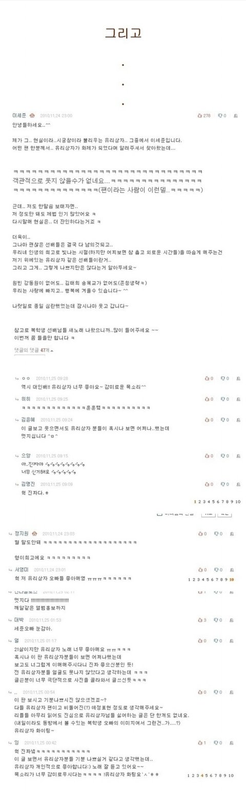 근데 ㅋㅋㅋㅋ이 판을 ㅋㅋㅋ유리상자 팬이라는 분이...이세준(유리상자 멤버)씨