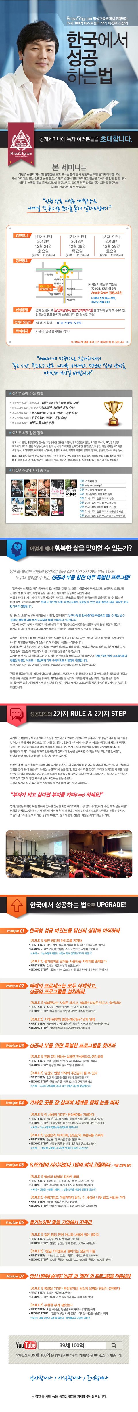 대한민국 최고의 동기부여 전문가 이진우 소장의 "한국에서 성공하는 법" 세미나를 여러분께 소개합니다.