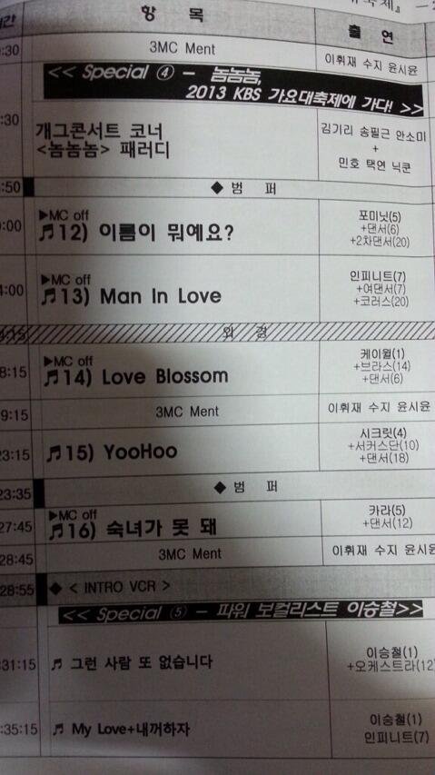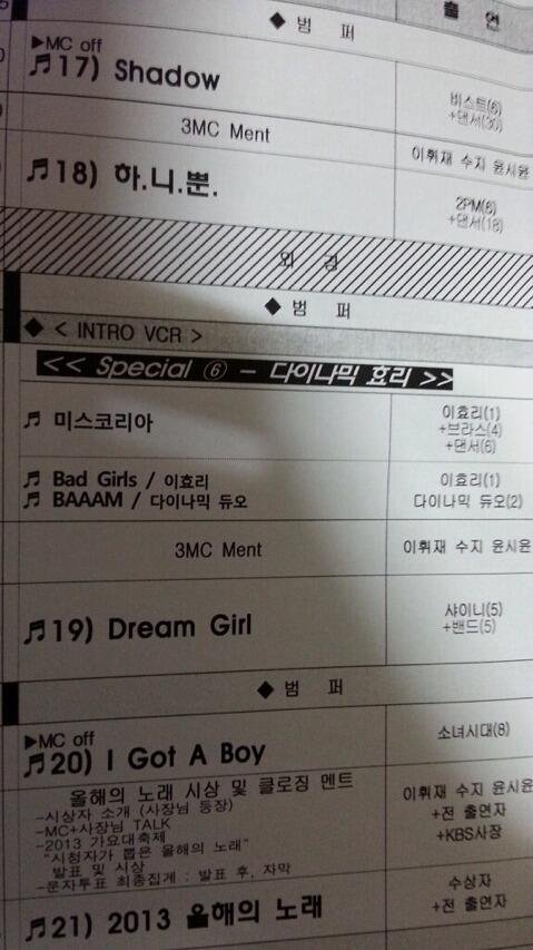 가요대축제 큐시트!! 투표ㄱㄱ
