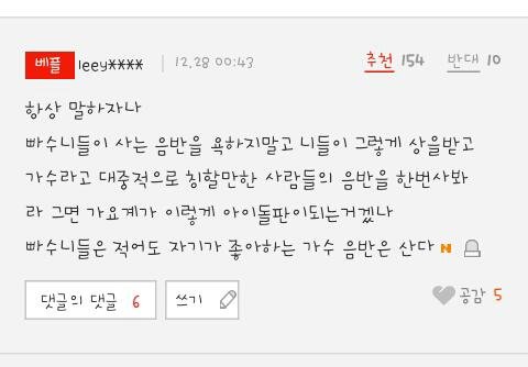 암튼 현재 기사 네이트에 2개 올라와있던데 하나는 베플 욕이 아님!! 욕 아닌거 추천 누르자♬