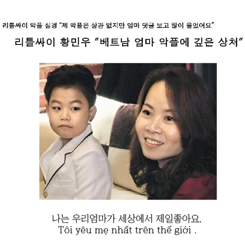 진짜 않좋은 글들 볼때마다 안타까워서 올리네요 민우랑은 같은 공연도 서보고 가끔씩 본 적도 많아서 안면이 조금 있어요 민우는 아직 남들에 비해 어리지만 정말 그렇게 생각 안될만큼 착하고 행실도 바른 아이에요 인사 꼬박 꼬박 정말 잘하구요 말도 정말 정말 이쁘게하는 아이에요 또한 어머니 아버지께서도 되게 좋으신 분들이에요 자기아들이 하는거 하나하나 쫓아다니시면서 응원해주시고 민우가 하고싶어 하는거 전부 지원해주시려 노력하시구요 자기아들이 조금의 잘못이라도 하면 요새 어머니들분 중에 감싸기만 하시려는 분들 계시는데 오히려 민우혼내시고 바른길로 가시길 이끌어주시는 분이세요 이 글을 말하는게 아닌 요새 sns를 보며 어린 나이에 열심히하는 저 아이가 혹여나 안좋은글들을 보고 상처 받을까 싶어 하는 말이에요 민우 정말 착하구 좋은 아이입니다 물론 부모님께서도요 혹여나 오해가 있으시다면 이작은 글 보시고 오해 풀어주셨으면합니다!^^