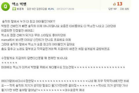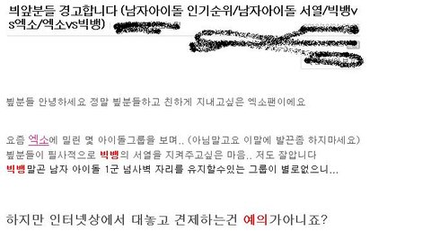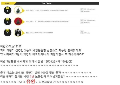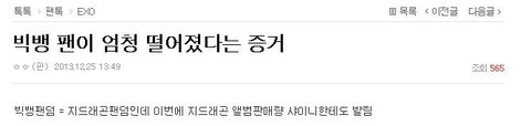 엓팬분들이 빅뱅에 좀 민감하게 반응하셔서 그런지 아직도 한참있네요..