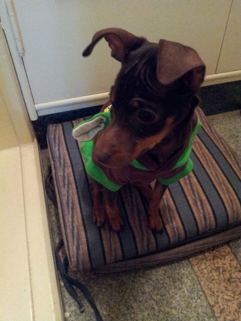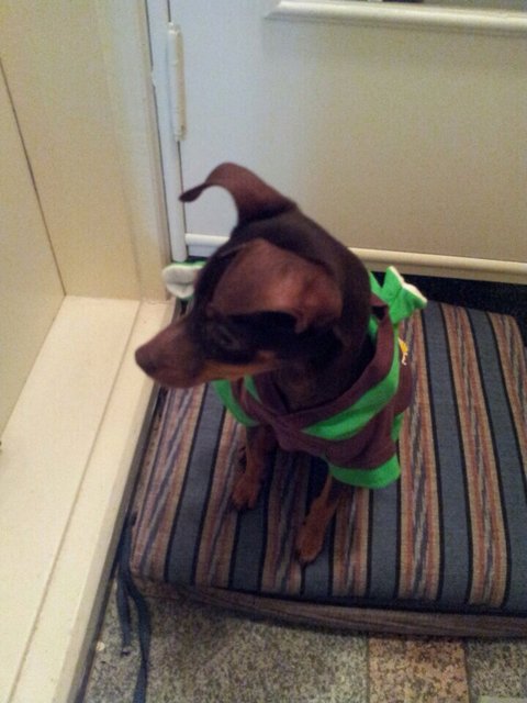 아이를 집안으로 데려와 저희 집 강아지 옷을