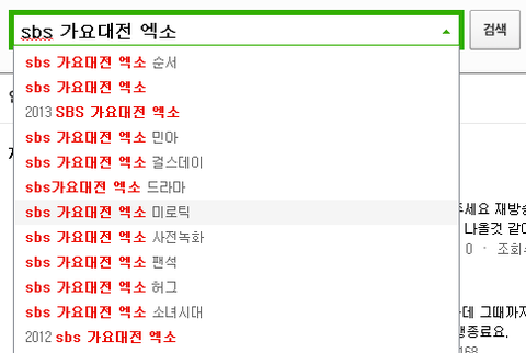 sbs 가요대전 엑소라고만쳐도 밑에 미로틱떠 허그도 뜨고ㅇㅇ