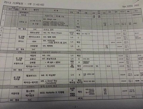 가요대전 큐시트!블락비 19번째라네?ㅋ그리고 콜라보무대도 잇는거 알긔?ㅋ이거보면서 가요대전잘봐!ㅋ