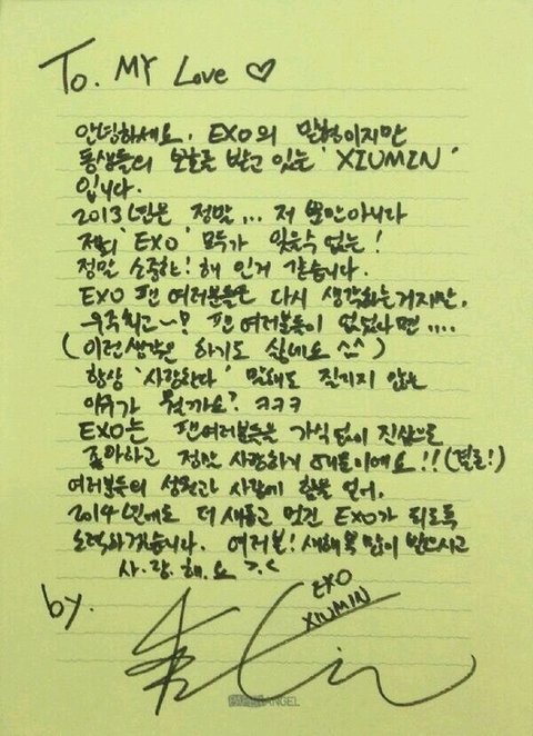 웅녀들 질투하지 마실게요 ㅋㅋ시우민이 쓴 연애편지보자