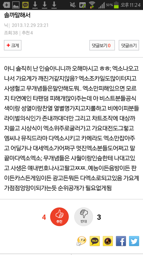 다른가수들과 똑같은 잘못을 저질러도 엑소는 몇배로 까이는게 너무싫음 ㅠㅠ