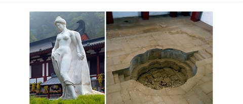 오늘날 장안 교외에 있는 화청지의 양귀비상과 그녀가 목욕했다는 해당탕