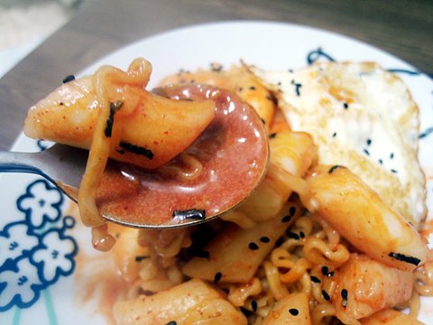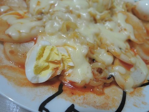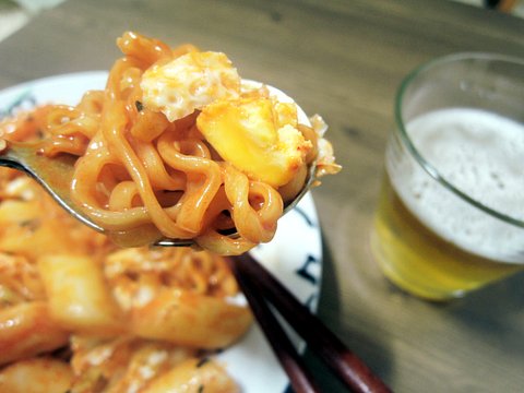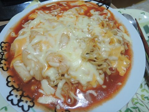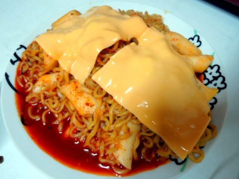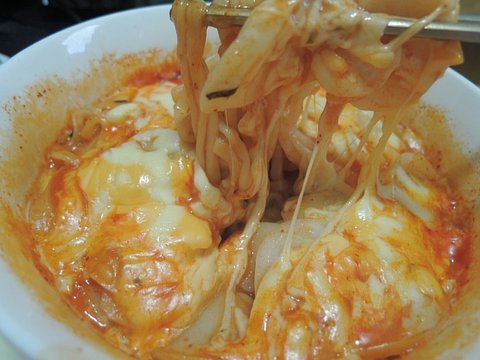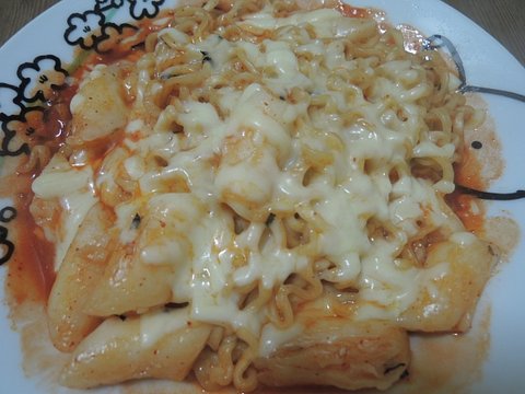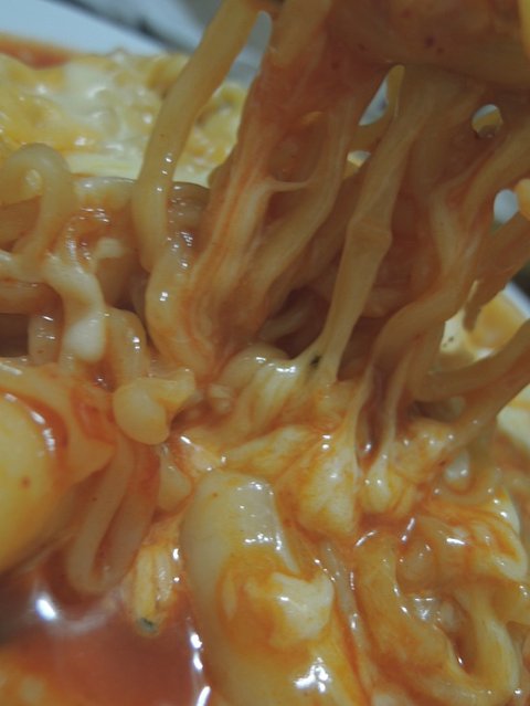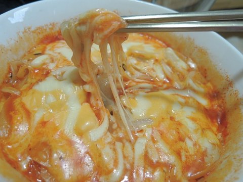 치즈가 있지만, 같이 끓이면서 버무리지 않아서 일까요ㅜㅜ