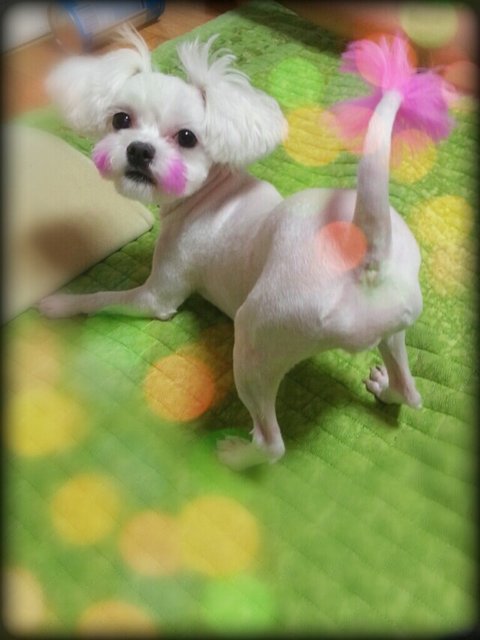 미용하고 이쁘게 염색해줬더니 좋아그런지 이름부르니 저러고 쳐다본다