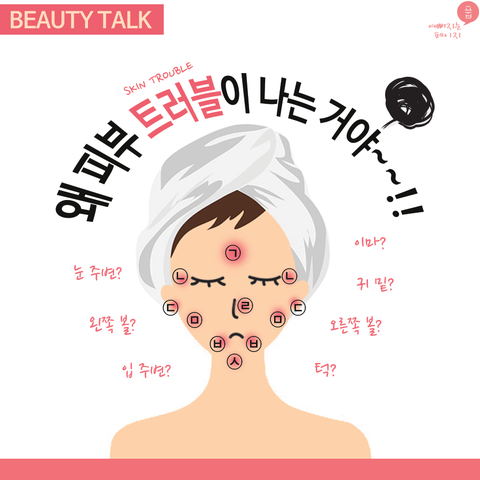 피부 트러블이 생겨 고민이신 분들 많으시죠? 얼굴 부위별 트러블 발생 원인은 여러 가지가 있겠지만, 몸속 어딘가가 안 좋아서 생길 수 있답니다!