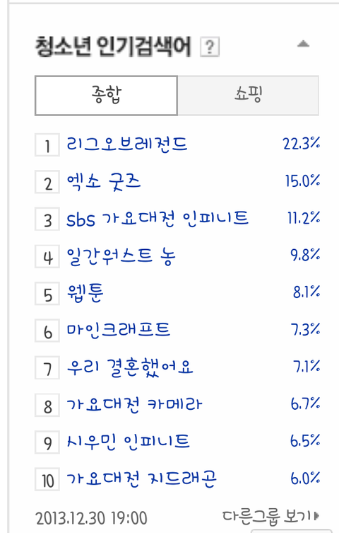 131230 청소년인기검색어 아직두잇음..(오후7시)