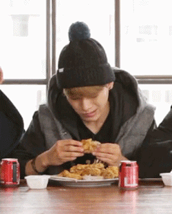저도 빨리 먹고 많이 먹는데 요즘 제가 한 그릇 먹을 때 첸이 두 그릇 먹고 있던데요."-백현