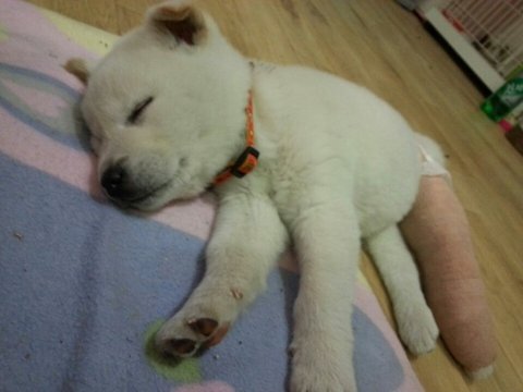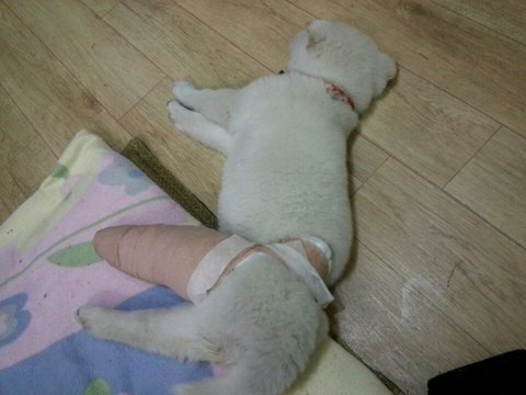 아직 어린 강아지인데 사고를 크게 당해서 대퇴부골절과 장기파열 ㅠㅠ