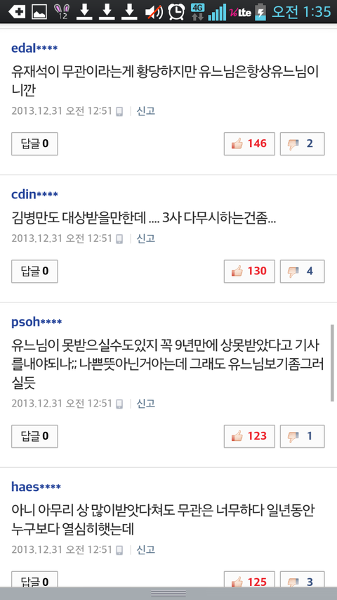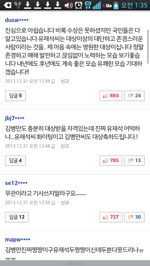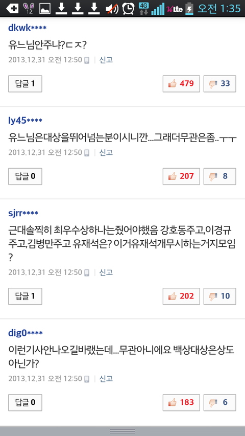 진짜;;유느님이 남들다받는상하나못받고 연말을끝낸다는게제일 어이가없네요