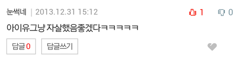 그 아이유 글마다 아이디 세개 거져와서 도배하는 악플러년이 이제하다하다 이런댓글달더라 ㅋㅋ