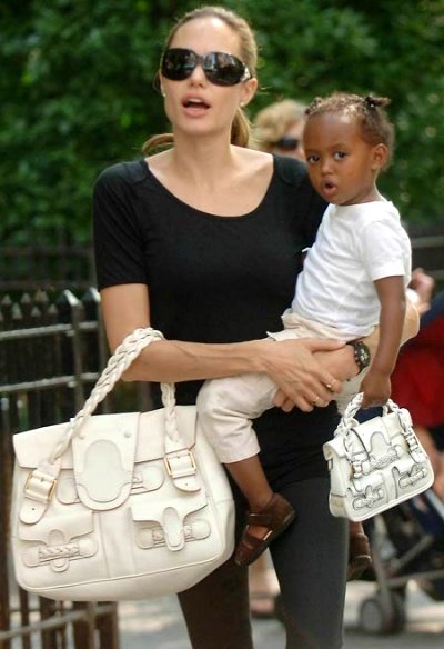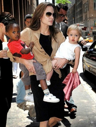 품에 안긴 자하라를 아주 소중하게 만지고 바라보는 안젤리나 졸리