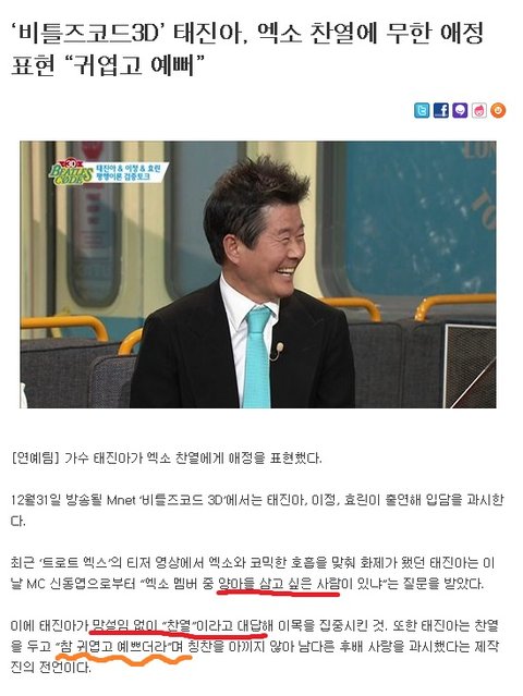 그리고 진짜 어이없는건 크리스와 찬열이. 저번에도 그 떡볶이 사건관련해서 내가 글을 한번 쓴적이 있는데 그건 진짜 아무리아무리 봐도 욕할 거리가 못된다. 솔직히 지금은 그냥 안티몇명이 몰아가는 구나 밖에 생각이 안듬. 대체 어딜 봐야 찬열이가 크리스를 싫어하는 것처럼 보임? 멤버내 분열을 왜 지들이 만들어내. 내가 지금 짤이 없어서 못올리는데 둘이 하이파이브하는거 주먹맞대는거 엄청 많고 우물조합알지?? 있을때마다 둘이 어깨동무하고 서서 이런 조합이 짱이죠~ 이러고 참 싫어하는 사람끼리 잘도 그렇겠다? 진짜 내가 그런 글 볼때마다 어이가 없어서 ㅋ