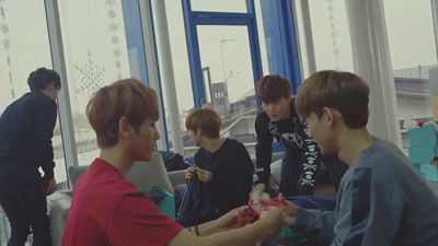 실뜨기하다가 결국리더형한테응징당하는 첸백이들