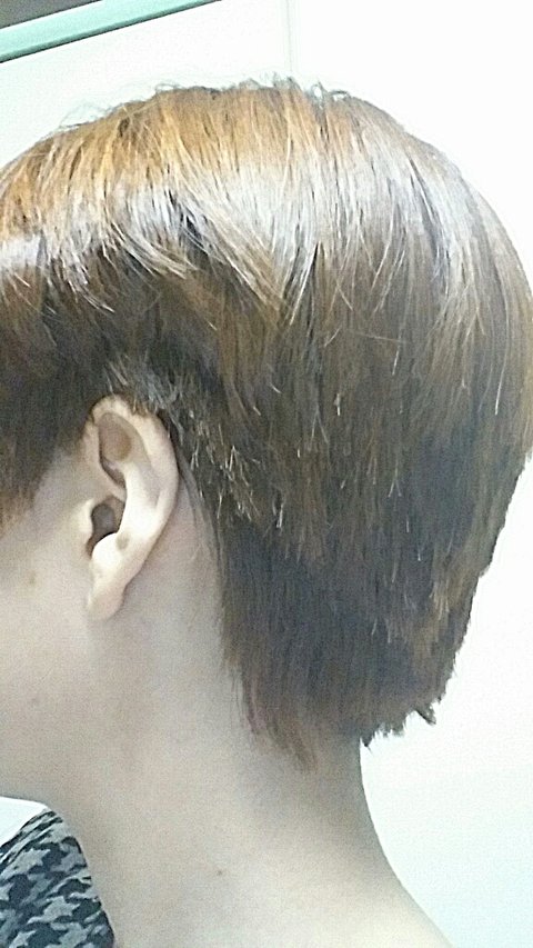 뒷부분이 정말 숱을 하나도 안쳐서 무슨 재단가위로 서걱서걱 잘라놓은것 같습니다.....