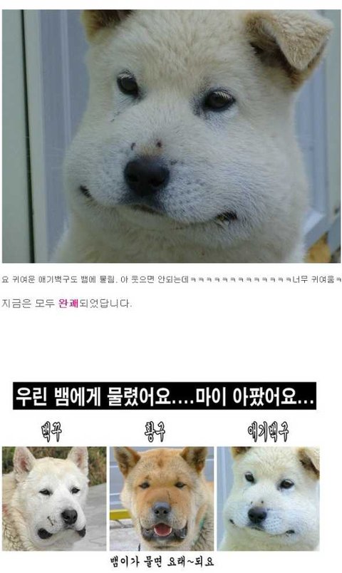 뱀한태 물린 개