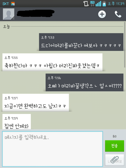 나 - 헐 오빠!!!! 대박 ㅋㅋㅋㅋ 나 머리 바꿀까 내일???