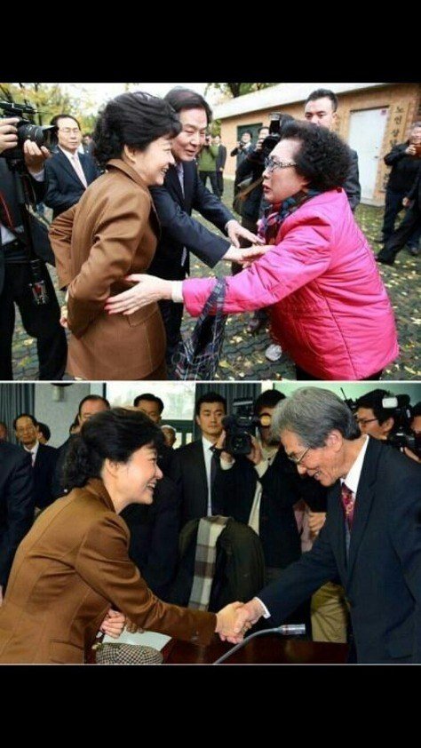 하지만저때에는 박근혜대통령 께서는 악수를하고다니실때 힘센분들과악수를하게될때세게잡으시는분들이계서관절을다치셨습니다.