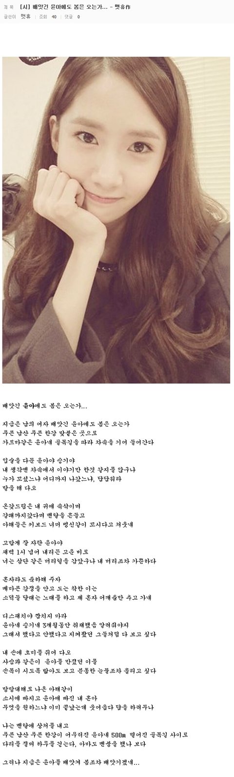 윤아 팬분들 열애설에 멘붕와서 시까지 쓰셨네요...